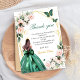 Pink Floral Butterflies Princess Quinceanera Thank You Card