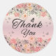 Pink Floral Butterfly Round Thank You Sticker