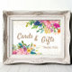 Add a touch of floral elegance to your celebration with this 10"x8" Cards & Gifts sign, perfect for displaying on your gift or welcome table. Featuring vibrant watercolor blooms in pink, purple, yellow, and green with sparkling faux gold confetti accents, this design beautifully complements any spring, summer, or garden-themed event. The stylish gold script and clear “Thank You!” message make it ideal for weddings, bridal showers, baby showers, birthdays, or any festive occasion.