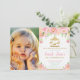Pink Floral Carousel 1st Birthday Girl with Photo Invitation
