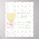 Welcome your guests in classic style with this charming botanical floral themed party mimosa bar sign printed on poster. Featuring an exquisite champagne glass decorated with pink bow and pink flower bloom, this sign adds a touch of delicate elegance to your wedding or bridal shower, setting the tone for your celebration immersed in the beauty of nature.