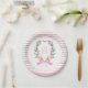 These adorable girl baby shower 7" paper plates would be perfect for celebrating your sweet baby. They have the baby shower, sprinkle or sip and see date below a pink watercolor crest with her first initial surrounded by greenery and roses, your bundle of joy's first name, and a coordinating pink watercolor striped edge. They're unique and precious just like your baby.