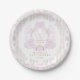 Pink Floral Crest Preppy Girl Baby Shower Paper Plate