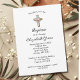 A beautiful yet simple Baptism invitation with a pink floral cross. Add your details. All fields are editable.