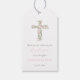 Pink Floral Cross Girl Baptism Favour Tag