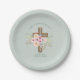 Pink Floral Cross Girls Bautizo Bautismo Baptism Paper Plate