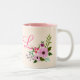 Pink Floral Custom Name and Monogram Two-Tone Coffee Mug