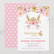 Pink Floral Cute Bunny Rabbit 6th Birthday Girl Invitation