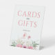 Gold and pink elegant floral "Card and Gifts" table sign for birthday