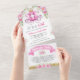 Pink Floral Cute Princess Carriage Baby Shower All In One Invitation