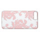 Pink damask monogram smartphone cases with pink and white damask pattern designed to let you carry your cellphone in style and was created for ladies or girls who love cute designs. Has openings for all your ports and connections.