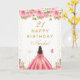 This elegant and glamorous birthday card can be personalized with a name or title such as daughter, granddaughter, niece, friend etc. The design features a beautiful princess with dark hair and dark skin in a pink ball gown. The text combines handwritten script and modern sans serif fonts for a classy and sophisticated look. The floral arrangements, butterflies and gold confetti create the perfect blend of rustic and chic.