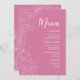 Pink floral dinner menu card. Elegant modern design featuring botanical outline drawings accents and typography script font. Trendy flat 5x7 menu card perfect for a stylish celebration.