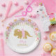 Pink Floral Dinosaur Birthday Party Triceratops Paper Plate