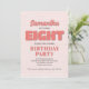 Celebrate her big day with this girl’s eighth birthday party invitation! Featuring pink "eight" typography, a cute floral pattern, and a simple template, this design is perfect for a modern, minimalist celebration. The whimsical calligraphy script adds a playful touch, while the elegant chic flowers bring a stylish whimsy vibe. Personalise this fun and charming invite today for a memorable birthday celebration!