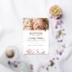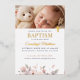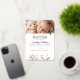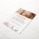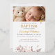 Share your baby's photo with our baptism invitation template, created with pink florals at the bottom and a tiny foil cross at the top under photo. Event and name templates are also foil templates.