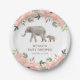 Pink Floral Elephant Girl Baby Shower Paper Plate