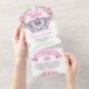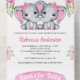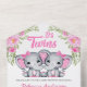Pink Floral Elephant Twin Girls Baby Shower All In One Invitation