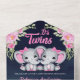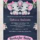 Pink Floral Elephant Twin Girls Navy Baby Shower All In One Invitation
