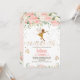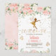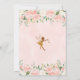 Sweet girl's fairy or fairies themed birthday invitation featuring a faux gold fairy, some fair dust, gold glitter dots and butterflies. This design also features a lovely predominantly pink floral arrangement.