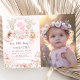Pink Floral Fairy Garden 3rd Birthday Photo Invitation