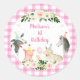 Pink Floral Farm Animal Birthday Classic Round Sticker