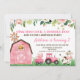 Girl's floral and pink barn birthday invitation. This mostly pink girl's farm animals birthday invitation features some farm animals, barn and pink tractor. This is a cute way to invite your little girl's guests to her farm themed birthday party.