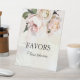 Pink Floral Favours Bridal Sign Stand. Designed in an Elegant Soft Blush Pink and White Peony and Roses. Matching items in our store Cava Party Designs.