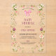 Elegant and modern baby girl shower Invitation featuring a pink flower frame with pink and black typography.