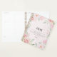 A beautiful planner featuring a lush pink and green watercolor floral frame with a touch of glitter effect branches. In the centre is your name in dark grey brush letter style font, the popular encouraging bible verse Jeremiah 29:11 "For I know the plans I have for you, declares the Lord, plans to prosper you and not to harm you, plans to give you hope and a future." and year below. The bible verse can be edited.