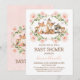 Pink Floral Frame Woodland Themed Baby Shower Invitation