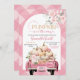 Pink Floral Gingham Pumpkin Truck Baby Shower Invitation