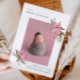 Rustic birth announcement card with a photo of your newborn featuring watercolor illustration of pink peony flower with greenery. Framed for your vertical photo.