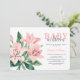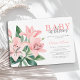 Elegant floral Baby in Bloom baby girl shower invitation. The design features beautiful watercolor blush pink lilies and greenery. Use the design tools to customise the text and fonts. Also available as digital download.