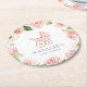 Pink Floral Girl Baby Shower Round Paper Coaster