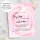 A close-up of a watercolored soft pink rose, flower. Personalise and add the name of the mum-to-be and party details.