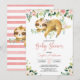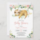 Pink Floral Girl Cute Sloth Baby Shower Invitation