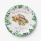 Pink Floral Girl Cute Sloth Baby Shower Paper Plat Plate