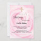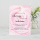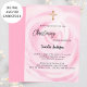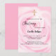 Pink floral girl gold cross Christening Invitation