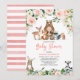 Pink Floral Girl Woodland Animals Baby Shower Invitation