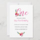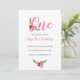 Cute and chic, this Pink Floral First Birthday Party invitation is perfect for your little girl's 1st birthday. Features three flowers with blossoms and leaves at the base of the letter "O" in the word "one" and pink polka dots with the same flowers on the back. All typography is changeable to fit your party planning needs.