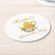 Pink Floral Gold Bridal Shower Tea Party Round Paper Coaster