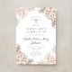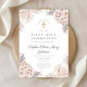 Editable Pink Floral Peonies Gold Cross Religious Holy Communion Invitation Template Card