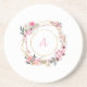 Pink Floral Gold Geometric Sandstone Coaster