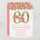 Pink Floral Gold Glitter 80th Birthday Party Invitation