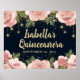 Pink Floral Gold Glitter Stars Black Quinceañera Poster
