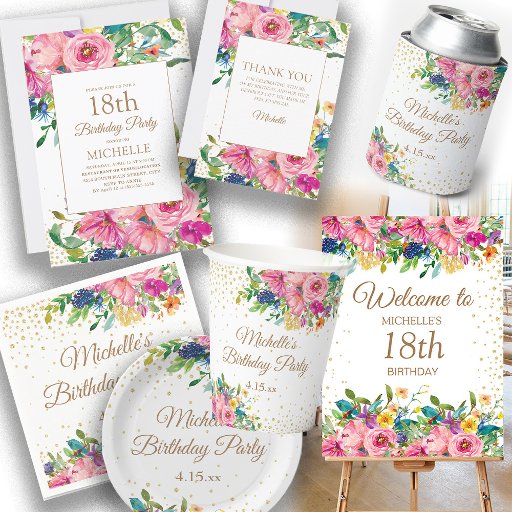 Pink Floral Gold Glitter Women's 21st Birthday Invitation