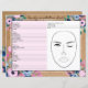 This elegant and girly beauty consultation face chart is perfect for any modern business; salons, stores, and various businesses. It features hand-painted blue pink, teal green, yellow, and black watercolor flowers and leaves around a faux printed gold border with blush pink and white text box and an illustrated drawing of a woman's face to demonstrate your client's look on top of a brown kraft paper background. It's country, cute, pretty, and unique. On the back is a place for your logo and business information. ***Contact the designer if you need any change to the sheet.***