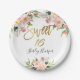 Pink Floral Gold Script Sweet Sixteen 16 Birthday Paper Plate