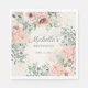 Elegant, custom birthday party paper napkins for women. Decorated with beautiful blush pink watercolor flowers and sage green leaves on a magical glittery gold diamond background. Personalised with the name of the guest of honour and her party date. Contact me for assistance with customisation or to request matching or coordinating Zazzle products for your party.